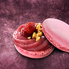 Mit Himbeere aromatisierte Macarons gefüllt mit