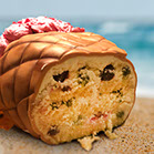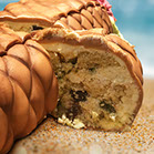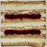 Portwein-Buttercreme, Marzipan, gewürzten Pflaumen und gebrannten Mandeln.