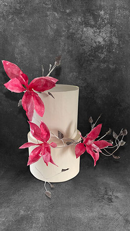 Ich verzichte bei meinen Designs bewußt auf klassisches Arbeiten mit Fondant, sondern setze auf klassische Buttercreme als Basis für die Oberfläche und arbeite mit Ess- oder Reispapier, temperierter Schokolade usw. Gegen einen modernen Einsatz von Fondant habe ich jedoch nichts.